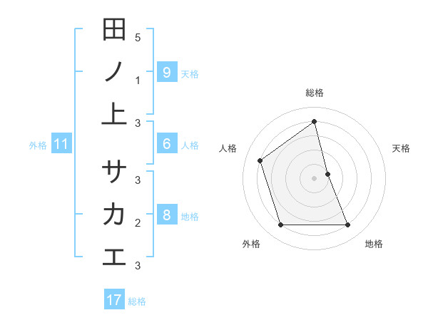 田ノ上 サカエさんを姓名の画数から五運を鑑定