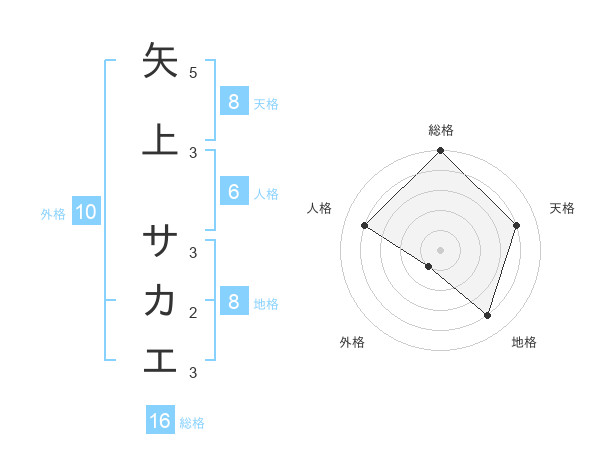 矢上 サカエさんの地格は8画の4点!