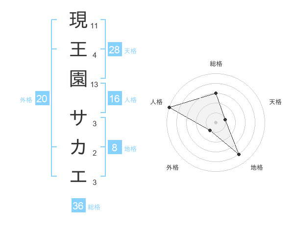 現王園 サカエさんの総格は36画の3点!