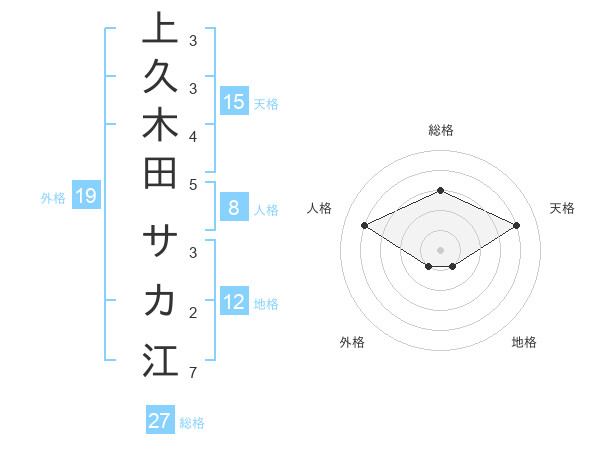 上久木田 サカ江さんを姓名の画数から五運を鑑定