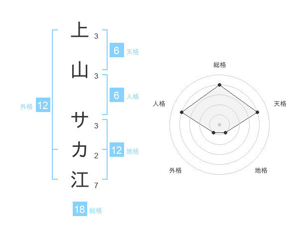 上山 サカ江さんを姓名の画数から五運を鑑定