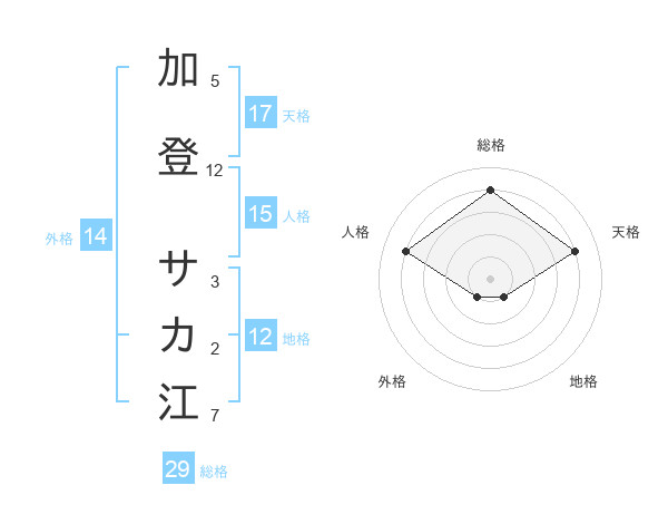 加登 サカ江さんを姓名の画数から五運を鑑定