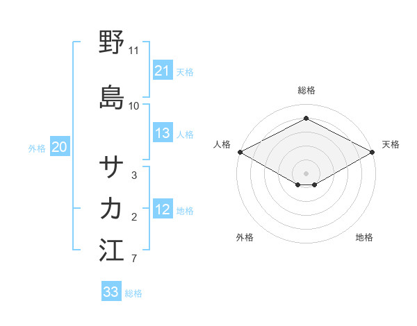 野島 サカ江さんを姓名の画数から五運を鑑定