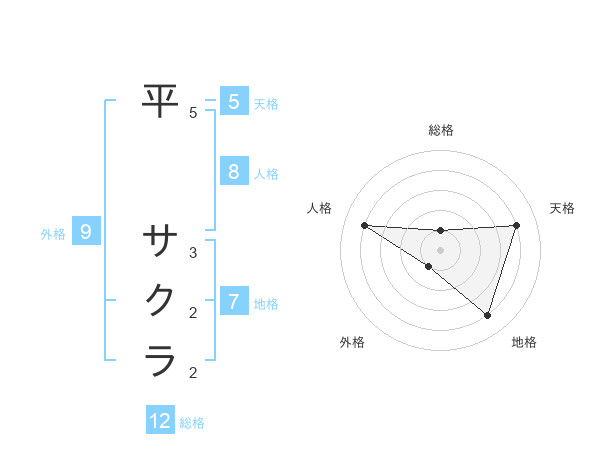 平 サクラさんの天格は5画の4点!