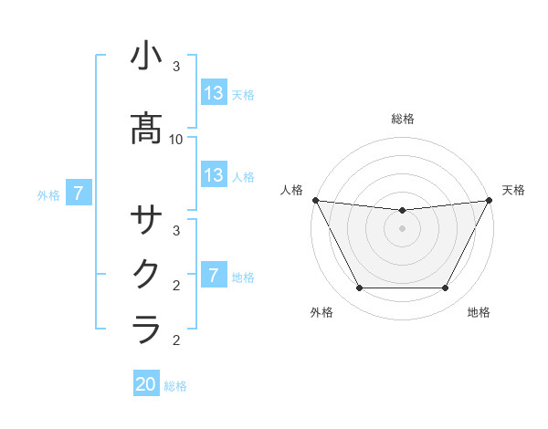 小髙 サクラさんを姓名の画数から五運を鑑定
