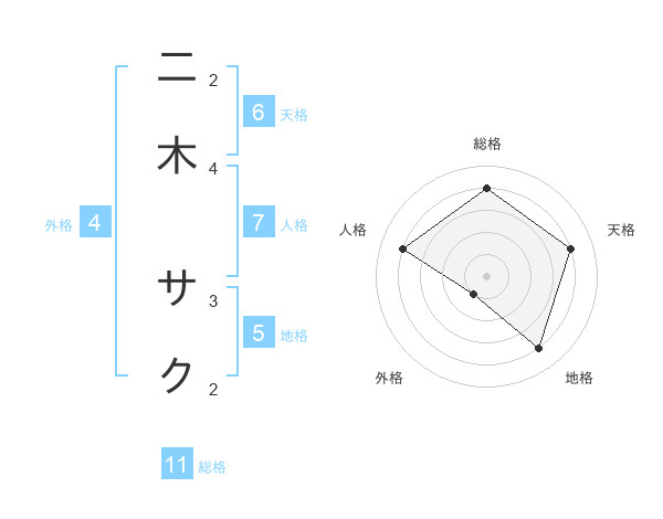 二木 サクさんの総格は11画の4点!