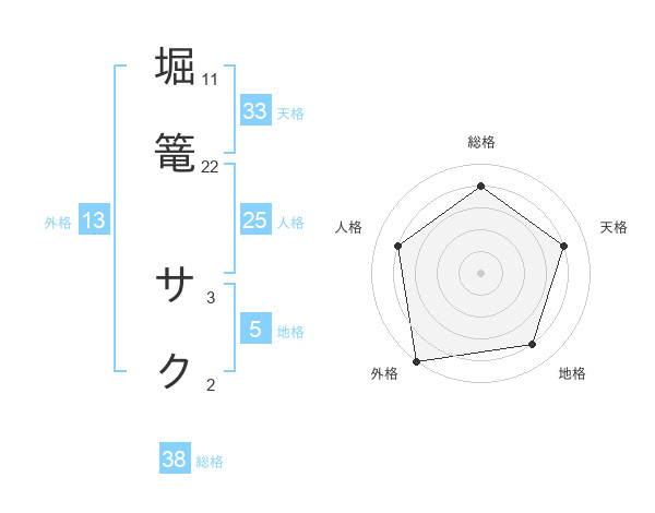 堀篭 サクさんの外格は13画の5点!