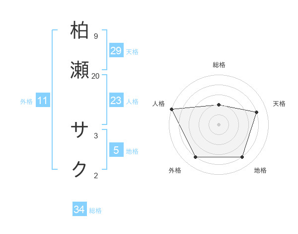 柏瀬 サクさんの総格は34画の2点!
