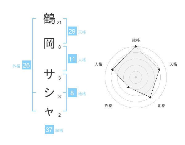 鶴岡 サシャさんを姓名の画数から五運を鑑定