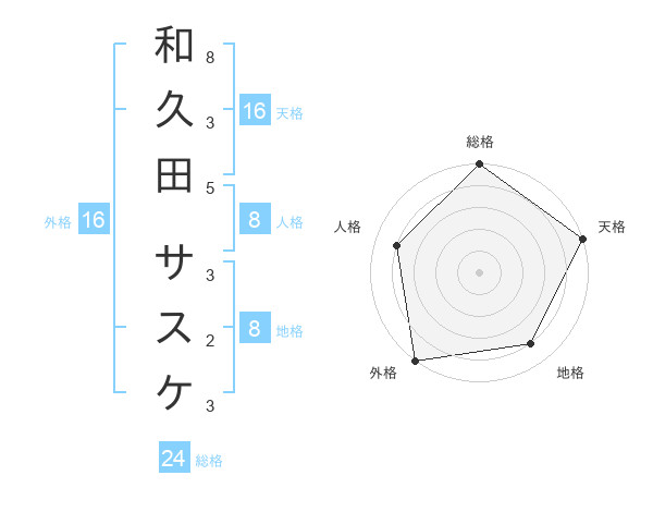 和久田 サスケさんの天格は16画の5点!