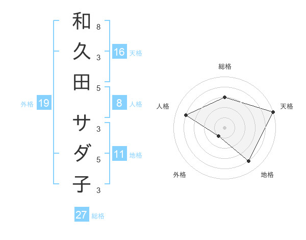 和久田 サダ子さんを姓名の画数から五運を鑑定