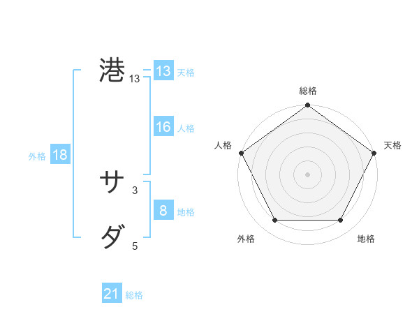 港 サダさんの総格は21画の5点!