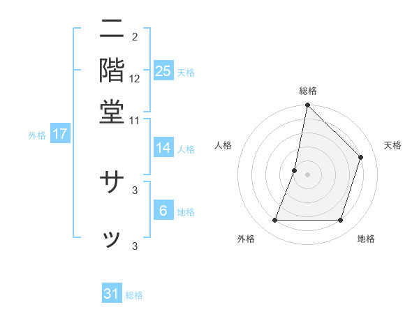 二階堂 サッさんを姓名の画数から五運を鑑定