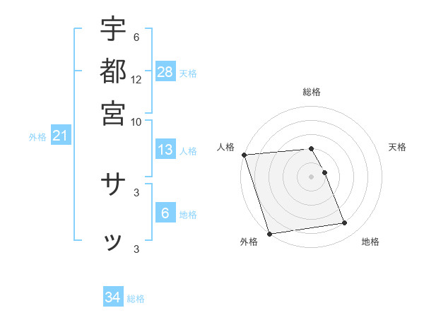 宇都宮 サッさんを姓名の画数から五運を鑑定