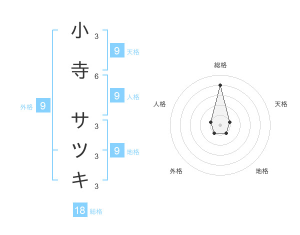 小寺 サツキさんを姓名の画数から五運を鑑定