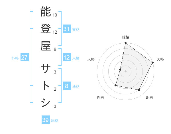 能登屋 サトシさんを姓名の画数から五運を鑑定