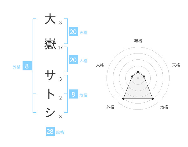大嶽 サトシさんを姓名の画数から五運を鑑定