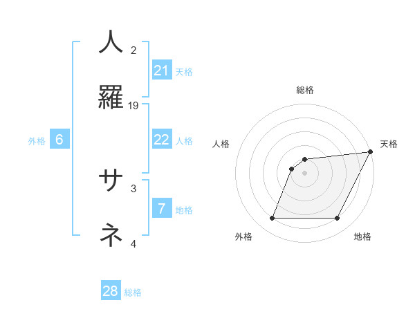人羅 サネさんの天格は21画の5点!