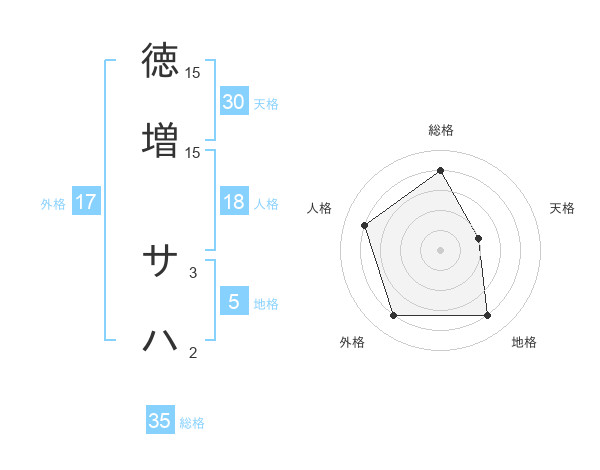 徳増 サハさんの総格は35画の4点!