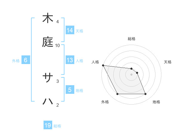 木庭 サハさんの総格は19画の1点!