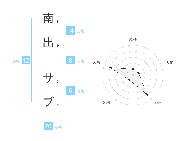 南出 サブさんの総格は20画の1点!