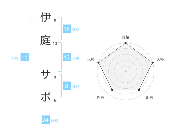 伊庭 サポさんを姓名の画数から五運を鑑定