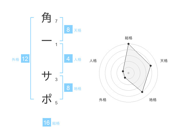 角一 サポさんの総格は16画の5点!