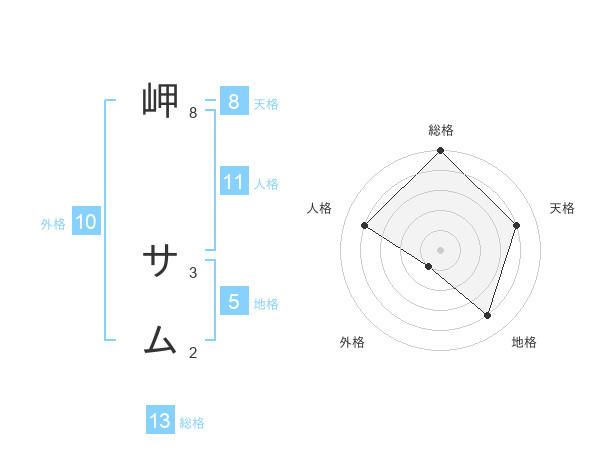 岬 サムさんの総格は13画の5点!