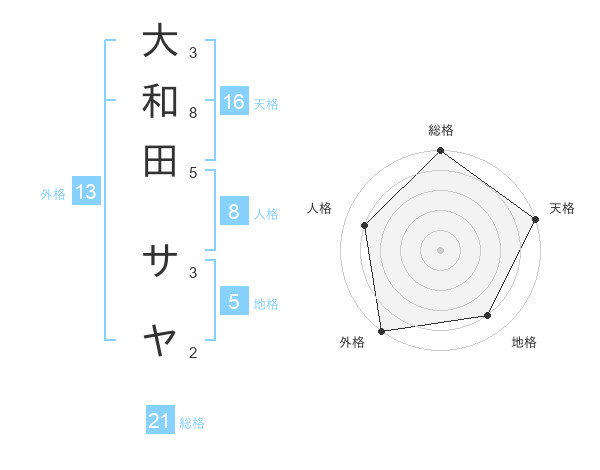 大和田 サヤさんの外格は13画の5点!