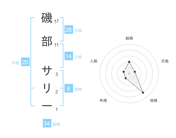 磯部 サリーさんの総格は34画の2点