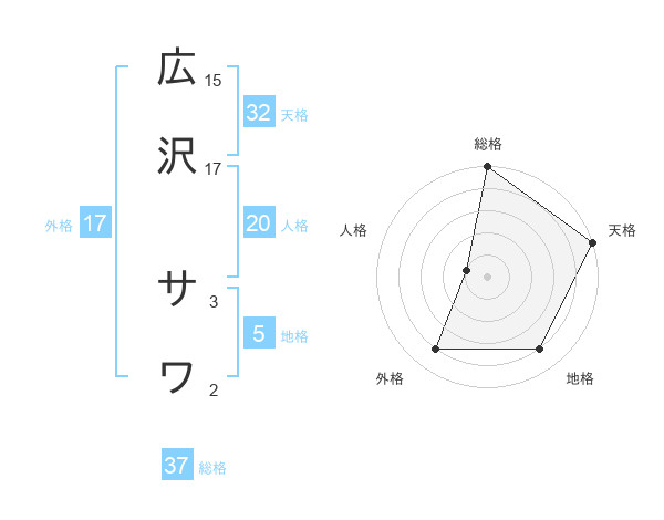 広沢 サワさんの総格は37画の5点!