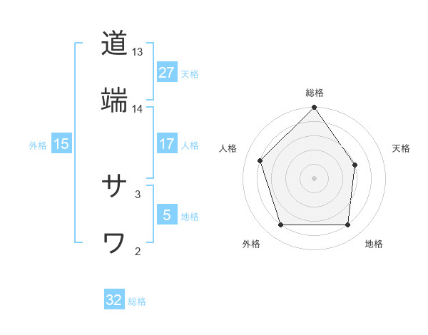 道端 サワさんの総格は32画の5点!
