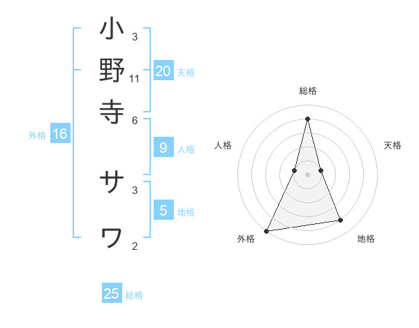 小野寺 サワさんの総格は25画の4点!
