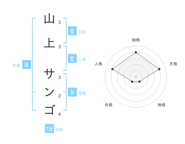 山上 サンゴさんの天格は6画の4点!