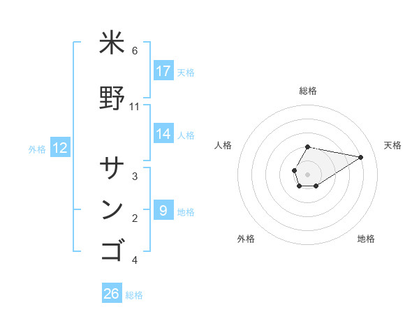 米野 サンゴさんの総格は26画の2点!