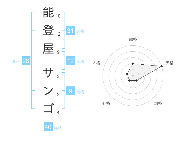 能登屋 サンゴさんの天格は31画の5点!