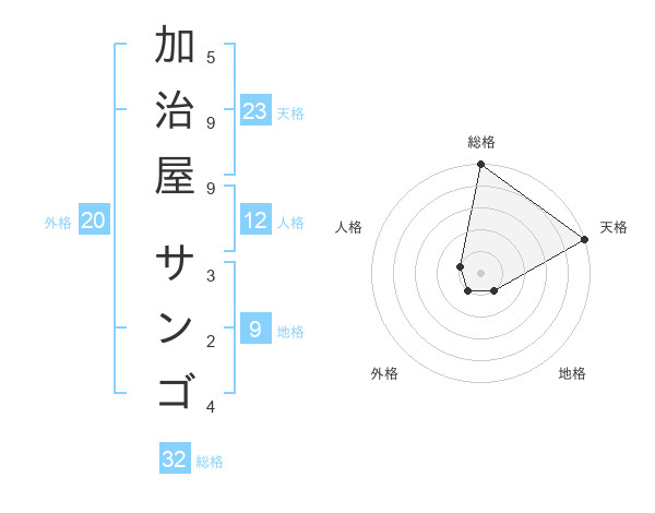 加治屋 サンゴさんを姓名の画数から五運を鑑定