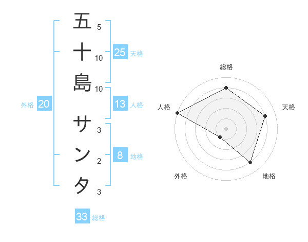 五十島 サンタさんを姓名の画数から五運を鑑定