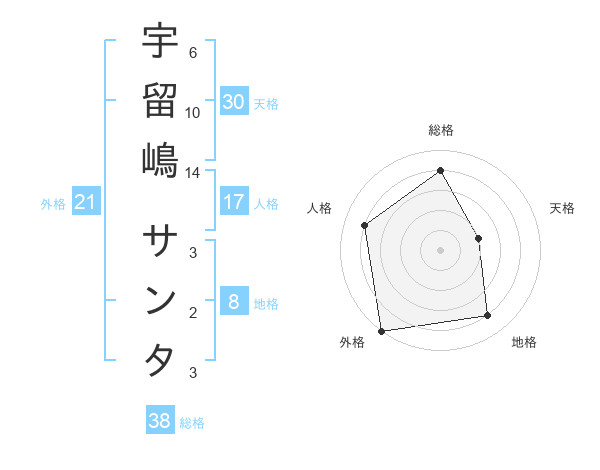 宇留嶋 サンタさんを姓名の画数から五運を鑑定