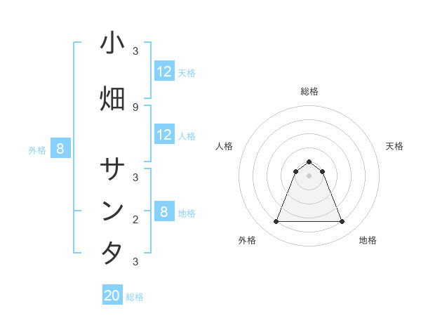 小畑 サンタさんを姓名の画数から五運を鑑定
