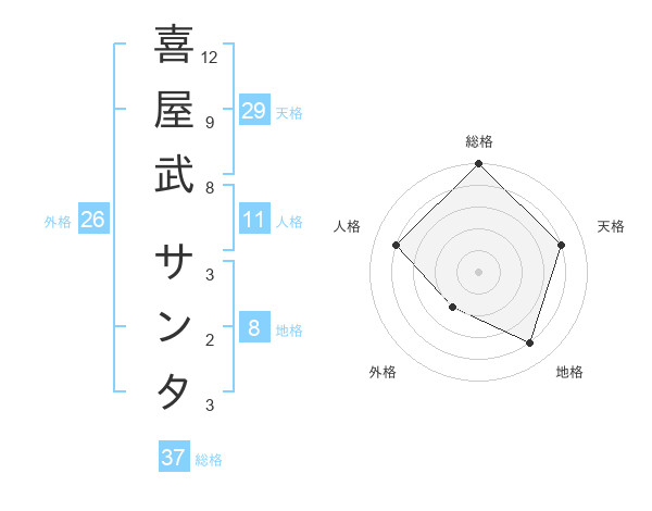 喜屋武 サンタさんを姓名の画数から五運を鑑定