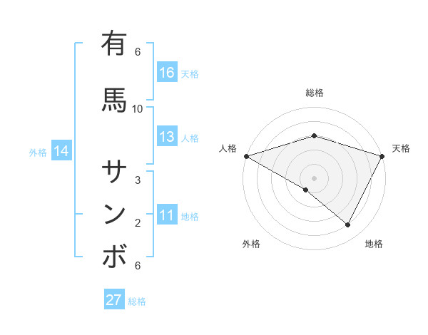 有馬 サンボさんの天格は16画の5点!