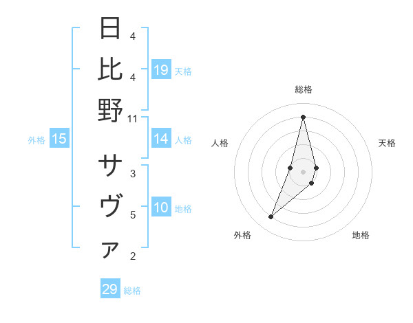 日比野 サヴァさんを姓名の画数から五運を鑑定