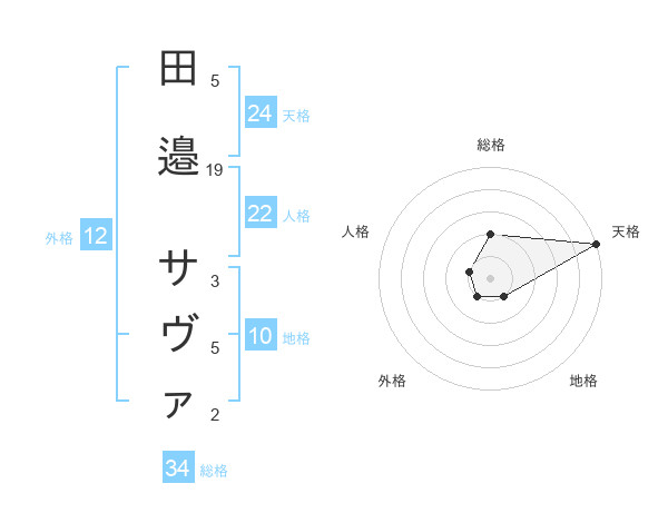 田邉 サヴァさんを姓名の画数から五運を鑑定