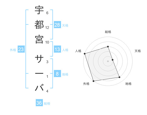 宇都宮 サーバさんを姓名の画数から五運を鑑定