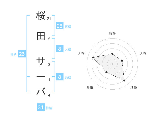 桜田 サーバさんを姓名の画数から五運を鑑定