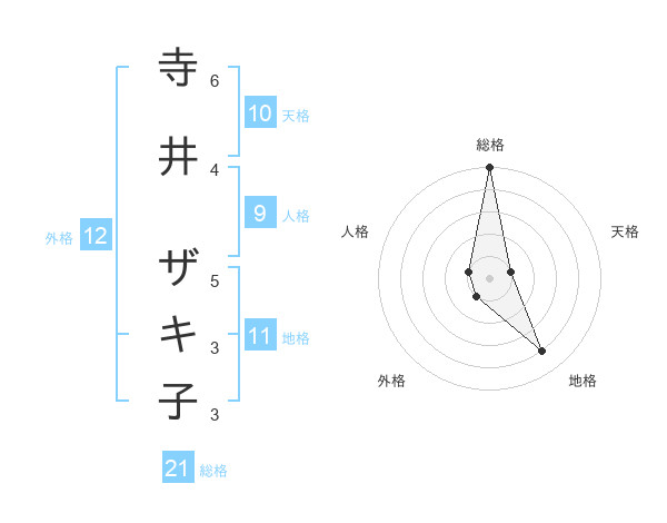 寺井 ザキ子さんの総格は21画の5点!