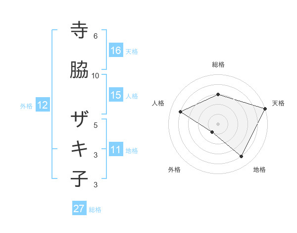 寺脇 ザキ子さんの総格は27画の3点!