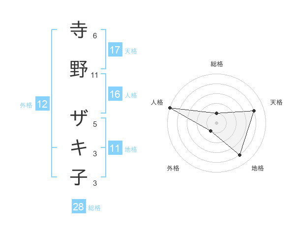 寺野 ザキ子さんを姓名の画数から五運を鑑定
