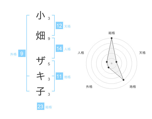 小畑 ザキ子さんを姓名の画数から五運を鑑定